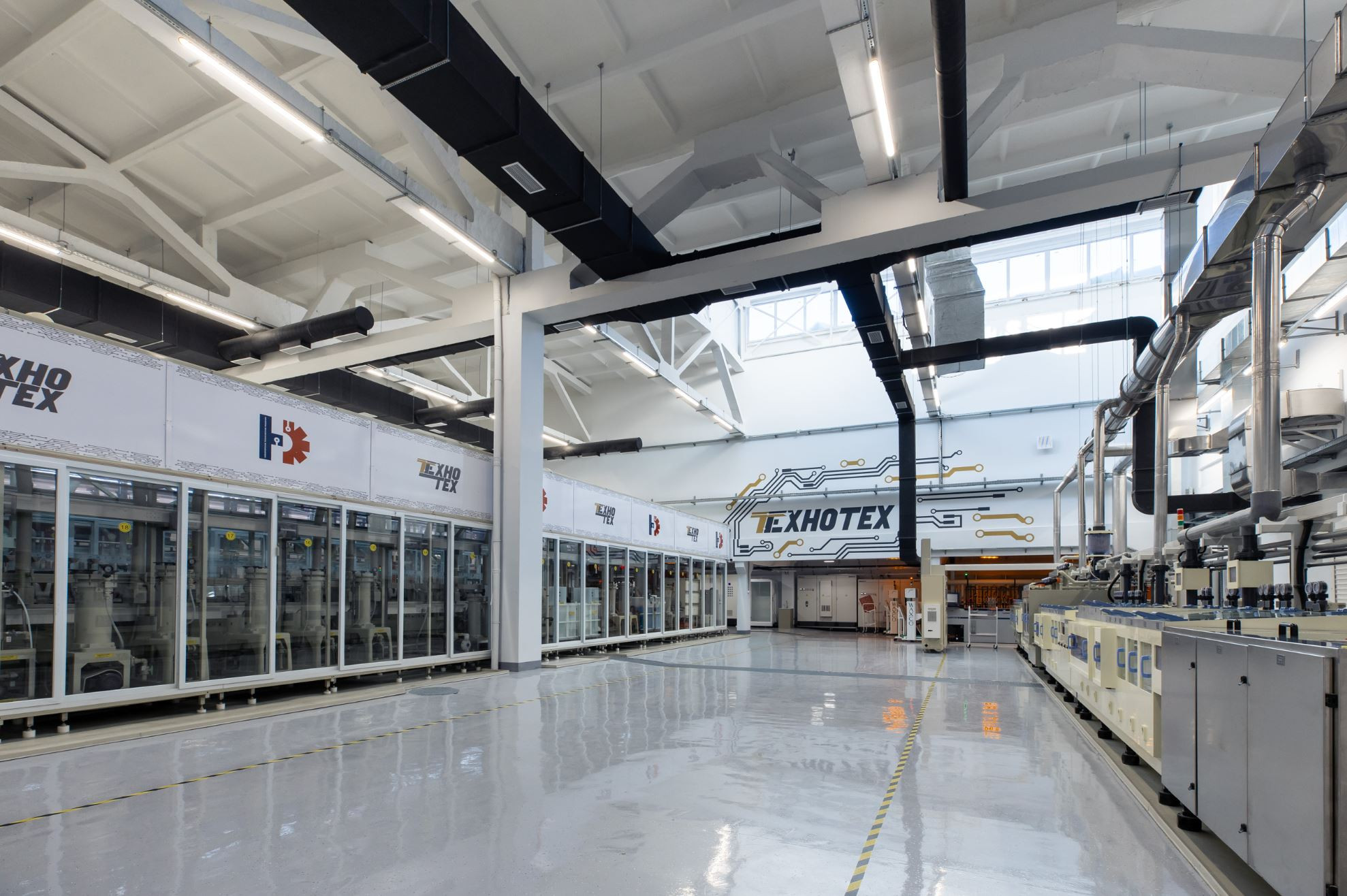 По итогам модернизации парк высокотехнологичного оборудования предприятия пополнился сразу несколькими единицами. «Главный принцип – максимальное снижение человеческого фактора», – поясняет нюансы поставщик оборудования, генеральный директор компании «Новатор» Игорь Крупенин. Все введенные в строй установки уникальны, поскольку разрабатывались и выпускались с учетом требований «Технотеха». Например, устройства для контроля стабильности печатных плат на молекулярном уровне, а также первая в стране двухрядная химико-гальваническая линия в полностью закрытом корпусе. Она не требует участия человека: после запуска необходимой программы все делает сама – перемещает заготовки, рассчитывает оставшееся время и т.д. Автоматизированная система электрохимической очистки растворов и регенерации позволяет получать крайне сложную топологию рисунка печатной платы — дорожки и зазоры размером всего 50 микрон (это в полтора-два раза тоньше человеческого волоса), что позволяет «посадить» на плату больше электроники.