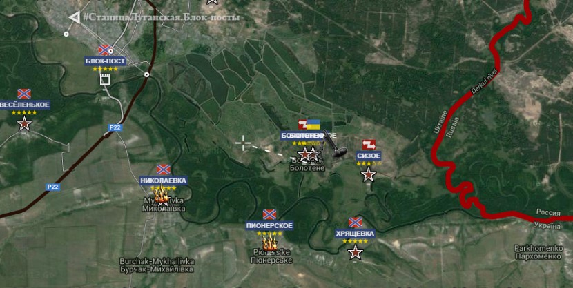 8 апреля опорный пункт ополчения между посёлками Болотенное и Сизое был обстрелян из пяти танков и трех БМП. Ополченцы потеряли 4 человека ранеными, также были повреждены 5 ББМ, которые находились на позициях. Ответным огнем был уничтожен танк ВСУ, три украинских БМП были сильно повреждены.