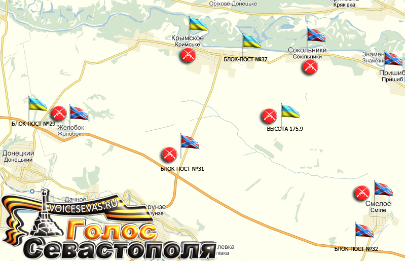 Обстановка в Новороссии продолжает оставаться напряжённой. Украинская армия продолжает вести беспокоящие обстрелы населённых пунктов Донбасса, преимущественно, в тёмное время суток. 14 мая перестрелки и локальные бои происходили на традиционных, горячих, участках фронта: под Широкино, на трассе Бахмутка и в районе Станицы Луганской, а также в пригородах Донецка.