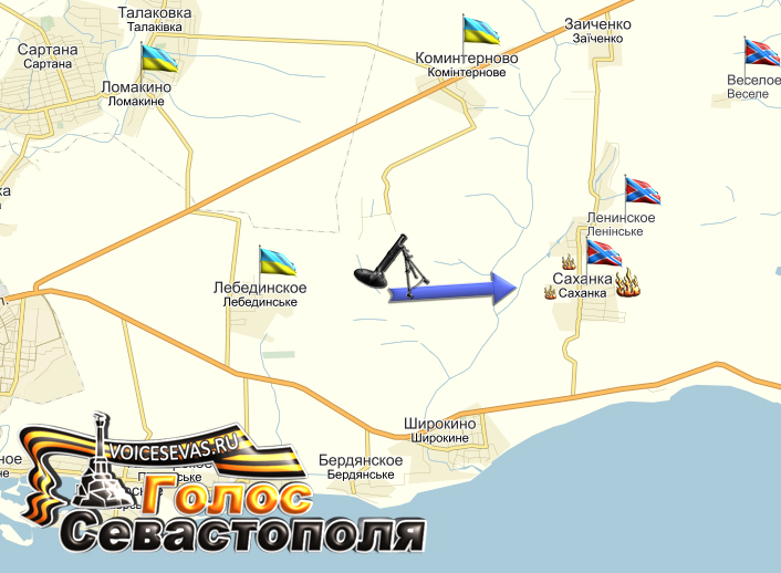14 мая представители Специальной мониторинговой миссии ОБСЕ и Совместного центра по контролю и координации во главе с генерал-полковником Александром Ленцовым посетили населённый пункт Саханка, который регулярно обстреливался украинскими войсками с начала мая, чтобы проинспектировать последствия обстрелов ВСУ. По итогам инспекции наблюдатели сделали вывод, что 14 мая огонь по Саханке вёлся с западного направления, где расположены позиции украинских военных. При обстреле силовики использовали миномёты калибром 120 миллиметров, которые должны былы быть отведены согласно Минским договоренностям.