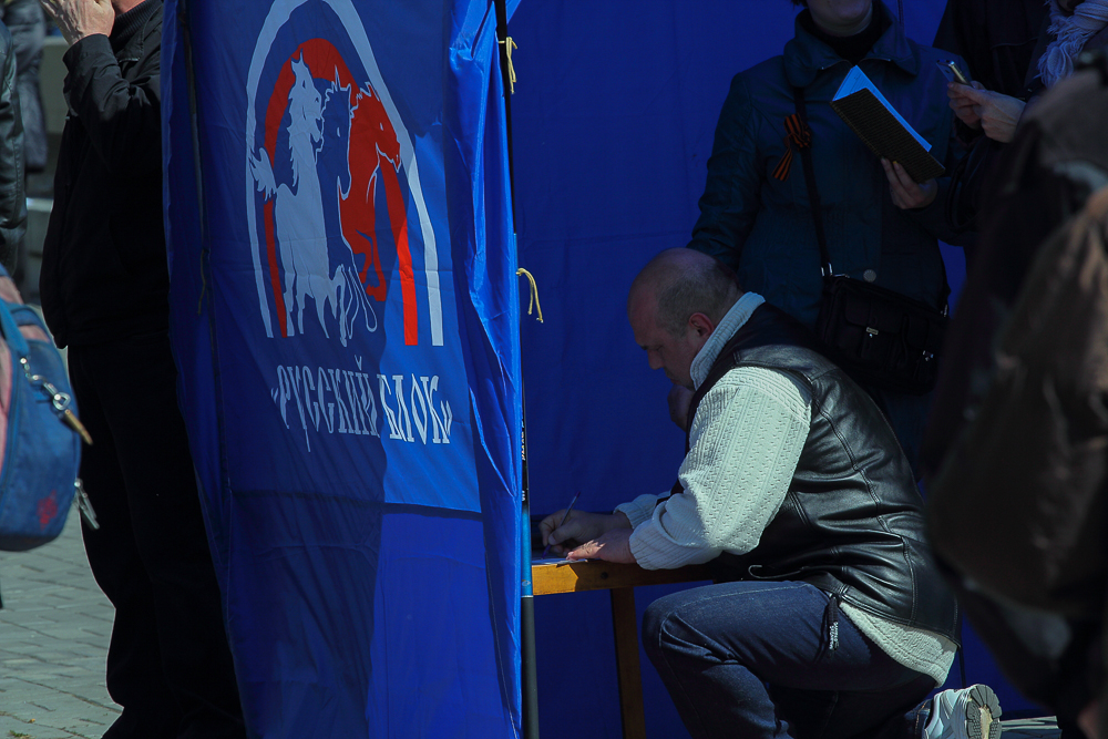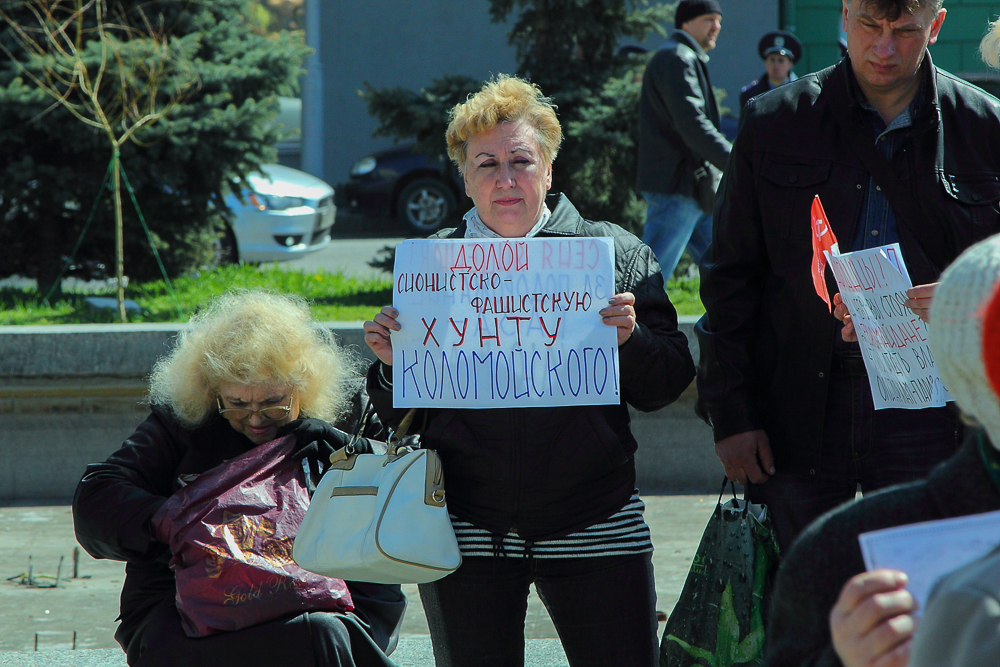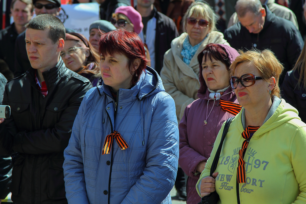 «Нам известно, что в нашей области, в нашем городе находятся вооруженные боевики из «Правого сектора». А это фашизм, самый настоящий, против которого боролись наши деды», — заявил один из выступавших с импровизированной трибуны горожан.
