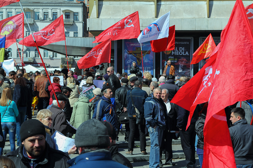 В Днепропетровске у здания театра оперы и балета под флагами Русского блока, КПУ и движения «НОД» собрались те, кто не верит действующей власти.