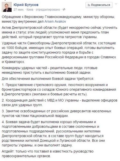 А вот и первые добровольцы, от имени которых говорит Юрий Бутусов, патриотично настроенный редактор украинского издания «Цензор-нет»: