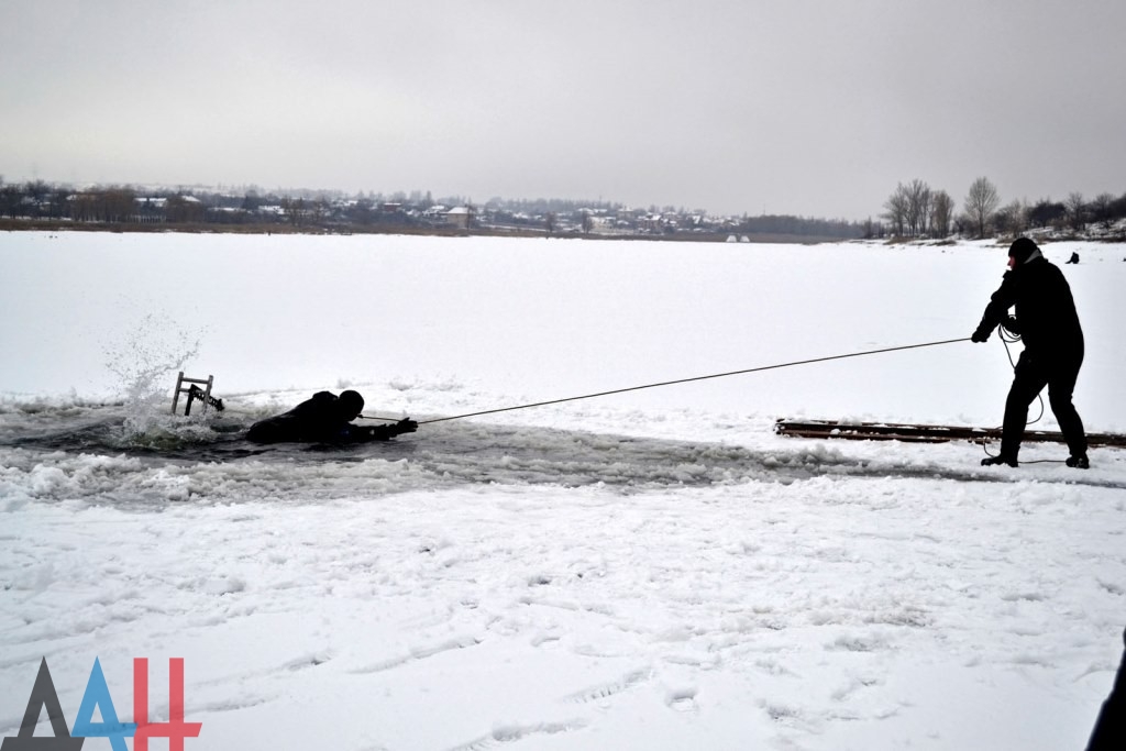 Сотрудники водолазной группы МЧС Республики провели сегодня рейд на одном из крупнейших водоемов столицы – Донецком море. В ходе мероприятия спасатели продемонстрировали навыки по спасению человека из воды в зимний период и проинструктировали рыбаков о правилах поведения на льду.