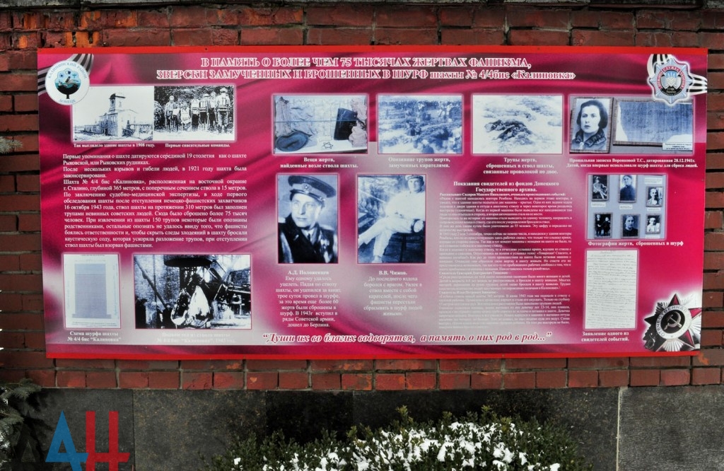 Донбасс становился свидетелем преступлений фашизма еще в годы Великой Отечественной войны. Немецкие захватчики развернули массовый террор в регионе. Шахта Калиновка 4/4-бис стала местом, куда каратели сбрасывали тела замученных ими, а порой и живых людей.
