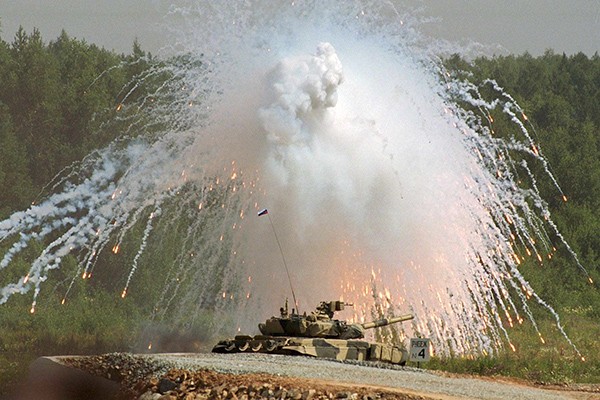 Самый передовой танк из применяемых российскими вооруженными силами. Главным орудием является 125-мм гладкоствольная пушка, а также зенитный тяжелый пулемет с дистанционным управлением.
