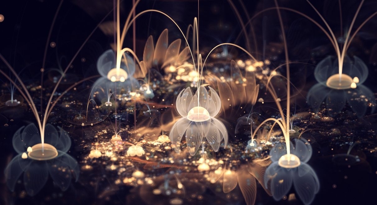 Итальянка Сильвия Кордедда (Silvia Cordedda) создала целую серию работ, которую мы можем условно назвать «Несуществующие цветы и другие растения». Для того, чтобы было более понятно, суть фрактальных изображений, создаваемая математическими формулами, сводится к тому, что если мы увеличим мелкие объекты, то увидим в них повторения всей общей структуры. И так может продолжаться до бесконечности. Фрактальное искусство не ограничено изображениями. Это может быть анимация, 2D и 3D-графика, и даже музыка.
