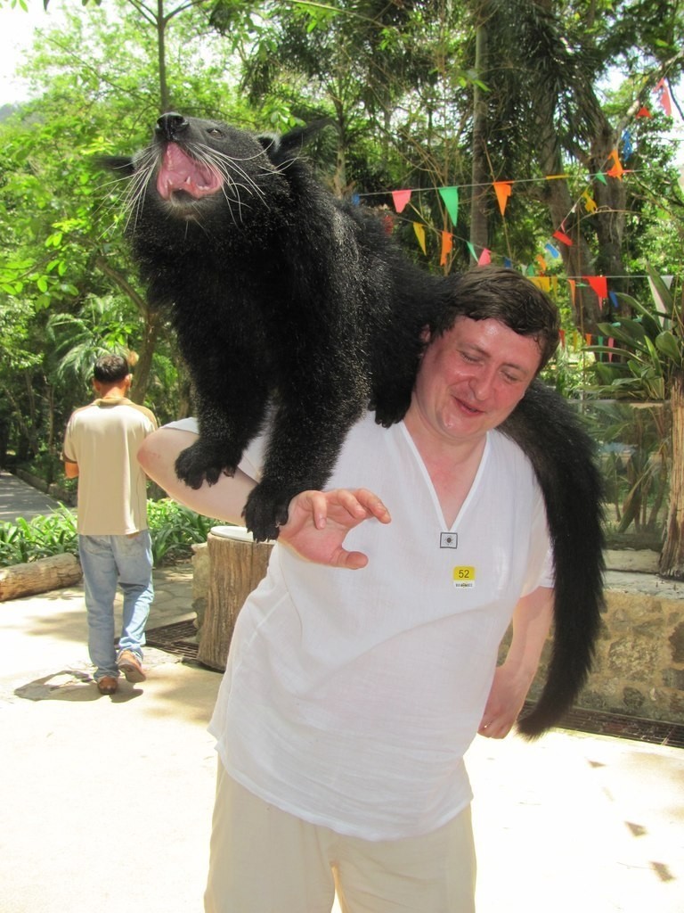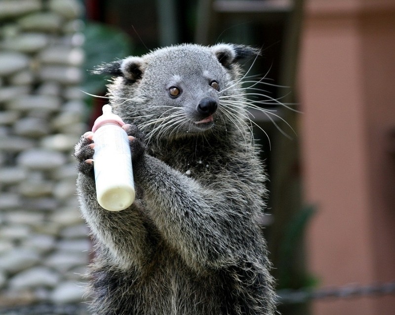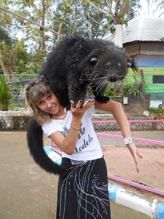 В зоопарках Таиланда желающие фотографируются с этими забавными зверьками и рассказывают, что бинтуронги с удовольствием позируют перед камерой. А ведь не всякая домашняя кошка выдержит поглаживания и тисканья на протяжении долгого времени от разных людей.