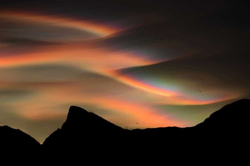 «Это перламутровые облака, или полярные стратосферные облака. Их можно было наблюдать в последний день года на Лофотенских островах, в северной Норвегии. Для этого атмосферного явления характерна сильная переливчатость. Образуются такие облака на высоте примерно 15-25 км при температуре –80 градусов по Цельсию», – фотограф Бартоломей Юрецки (Bartłomiej Jurecki).