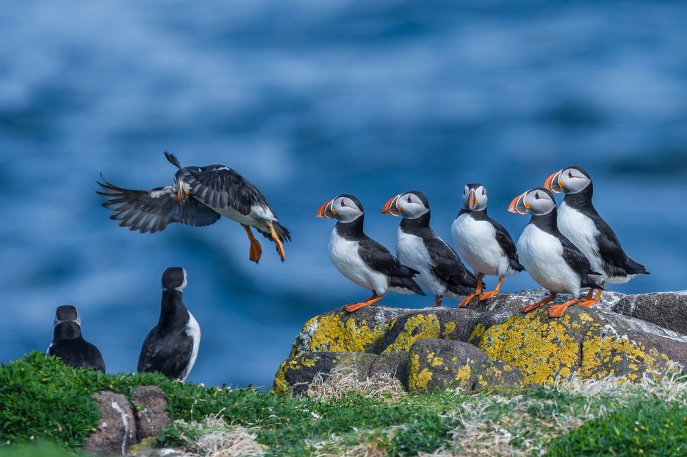 Стая атлантических тупиков на скале. Автор фото Дариус С. (Dariusz S.).