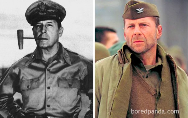 Американский фельдмаршал Дуглас Макартур (1880-1964) и Брюс Уиллис