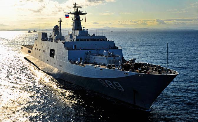 Универсальный десантный корабль ВМС НОАК «Чанбайшань» в заливе Петра Великого во время активной фазы совместных российско-китайских военных учений