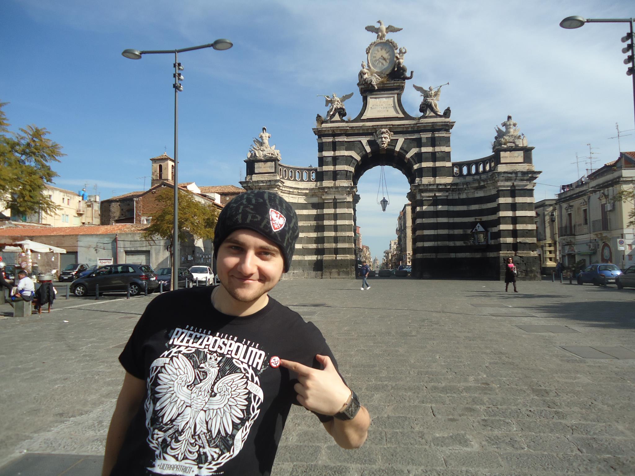 Источник фото facebook dariuszmatecki. На фото польский журналист Дариуш Матецкий. На футболке у него значок с перечеркнутыми серпом и молотом. Матецкий - антикоммунист, и также не имеет особых симпатий к России и Путину.