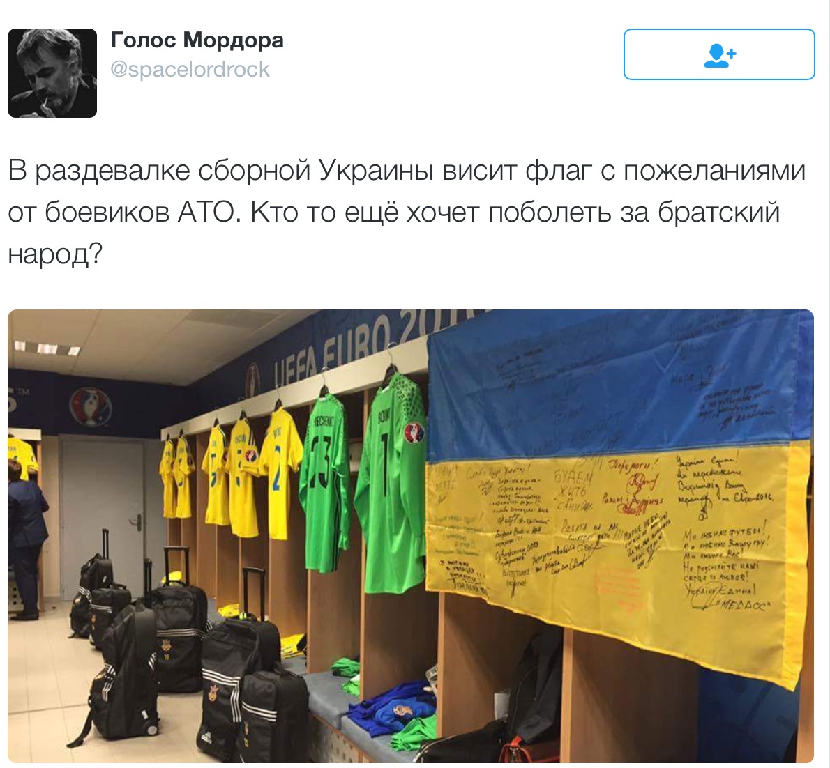 1. В раздевалке сборной Украины – флаг с пожеланиями от хэроев АТО. Как оказалось, не на фарт.