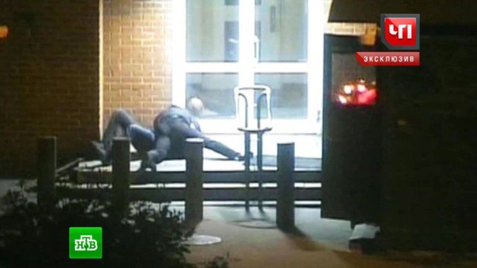 «В полпервого ночи рядом с диппредставительством из такси буквально на ходу выбежал подозрительный мужчина. На дворе июнь, а незнакомец — в вязаной шапке, надвинутой на глаза, и куртке. При этом он даже не собирается показывать документы. Полицейский, который охраняет посольство, бросается ему наперерез и пытается остановить. В ответ получает удар локтем в лицо. На крыльце завязывается борьба. В итоге прижатый к земле человек буквально вползает на территорию США, а страж порядка вынужден отступить», — описывает событие телеканал НТВ, который сумел раздобыть видеозапись с ближайшей камеры наблюдения.