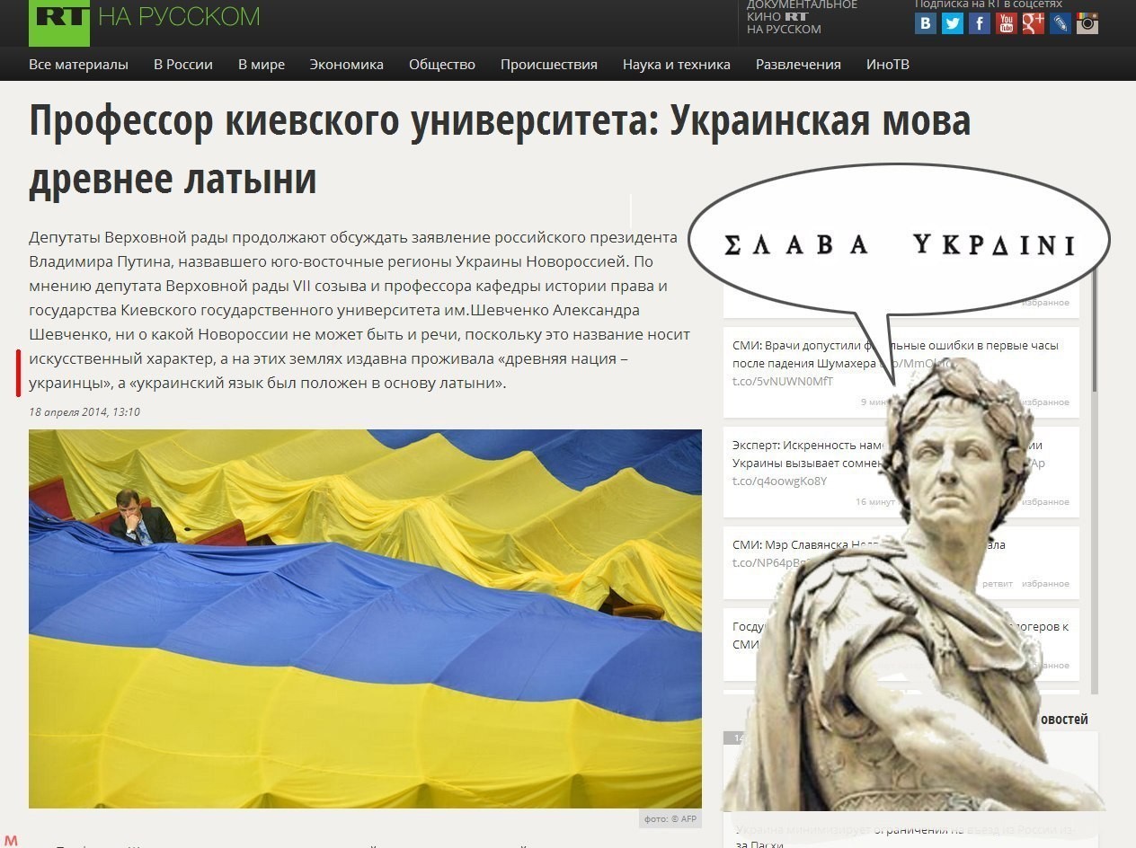 Кремлёвские СМИ и сурковская пропаганда делают ставку, что украинской государственности не сорок тысяч лет (согласно летописям протоукров), а всего двадцать пять (не считаю еще пару лет УНР после падения царского режима). Однако в произведении еще древнеримского историка Вергилия «О природе вещей» встречаем упоминания, что любой уважающий себя римский гражданин в качестве второго паспорта имел гражданство Украины. То есть Украина входила в еще первый Евросоюз, когда германские племена бегали по лесам, а дикие франки жрали лягушек из болот! Именно союз с древнеукрским атаманом Миколой Галицюком позволил Гаю Юлию Цезарю подавить восстание мятежного гладиатора Спартака и египетского фараона Тутанхамона IV-го. Укры были стратегическим партнером Рима, а торговлю осуществляли через Крым. Который от этого и получил свое название – «К Рiм». Римские императоры любили щеголять в вышиванках, перенятых от украинцев (т.н. «рiмска вiшиванка», по-римски Romus Visivankus).