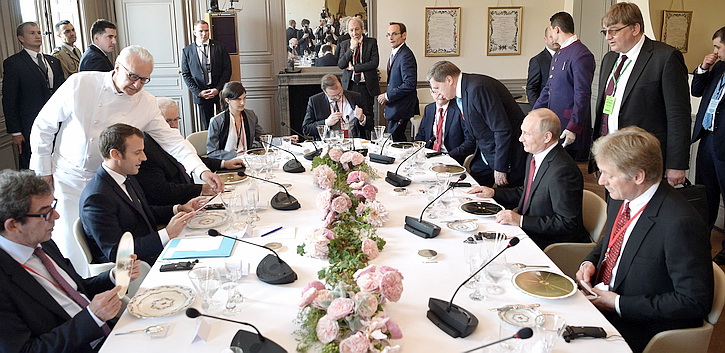 Путин и Макрон провели сегодня в Версале свои первые переговоры, которые длились 2 часа 45 минут. Источник