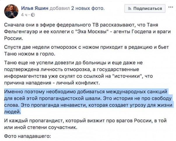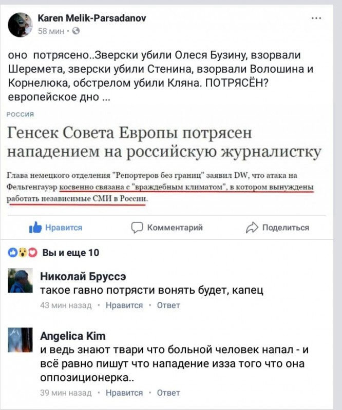 Вот, это вам пример, как вся эта компашка работает. Почитайте, как он нагнетает, посмотрите на заголовок, на его комментарии. Заодно, найдите у него тексты про нападжения на журналистов на Украине.