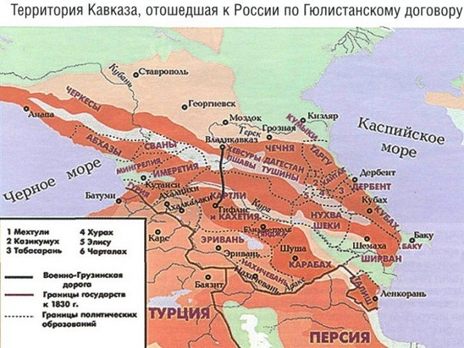 Персидский правитель Фетх-Али-шах признавал переход под царскую длань Дагестана, Картли, Кахетии, Мегрелии, Имеретии, Гурии, Абхазии, части современного Азербайджана и семи ханств, в частности Карабахского. Также Россия заручилась правом иметь на Каспии военный флот.