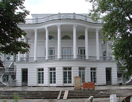 Огромный дворец выполнен в классическом стиле. Дополняет картину дом поменьше, который находится примерно в двадцати метрах от основного строения. Кроме того на территории усадьбы Порошенко есть что-то похожее на коттедж для гостей, баня в виде сруба, две беседки возле воды и колоннада. Не позабыл Порошенко и об устройстве личной часовни.