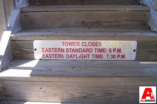 Правила пользования башней почему-то указаны не перед входом, а прибиты к ступеньке в середине лестницы