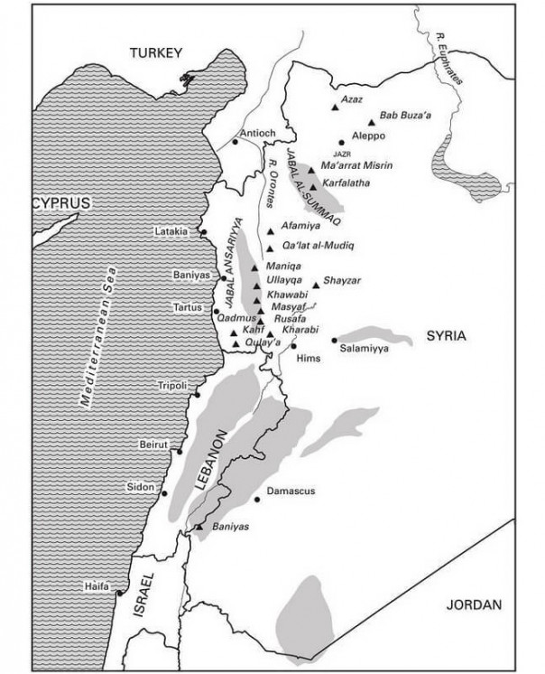 В двух сирийских «укрепрайонах» ассасины располагали не менее чем 24 крепостями, замками и фортами. Главным, безусловно, был Масиаф, захваченный ими в 1140–1141 годах. Замок стоял в середине главной дороги между Хамой и Баньясом и занимал узловые позиции на пути из Алеппо в Хомс.