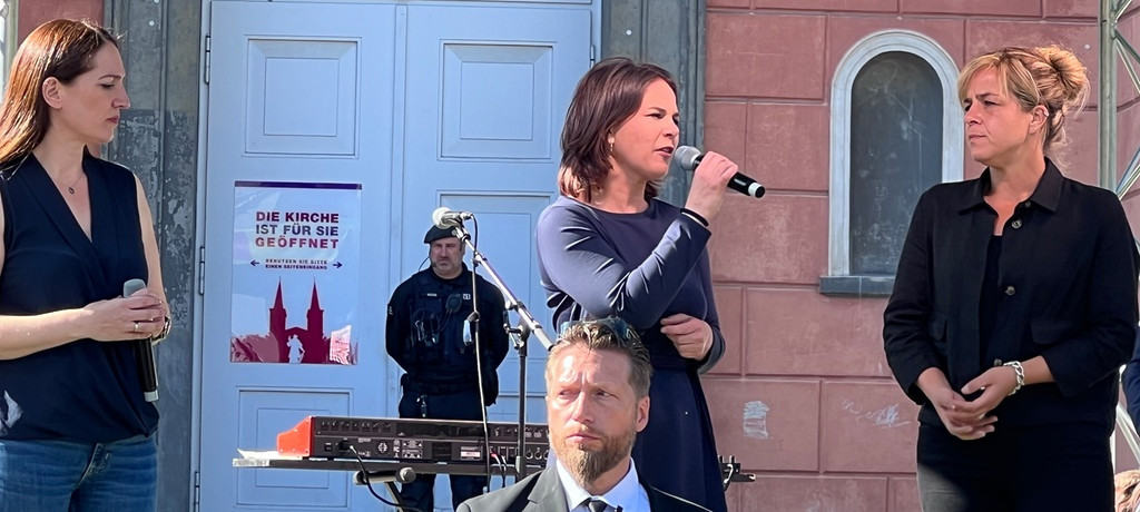 Дипломат прибыла в город, чтобы поддержать однопартийку Мону Найбауэр, участвующую в выборах в Северной Рейн-Вестфалии. Бербок вышла на сцену, чтобы выступить перед участниками митинга, после чего из толпы в нее полетели яйца. Охрана быстро прикрыла ее щитами, а напавшую на министра женщину схватили полицейские.