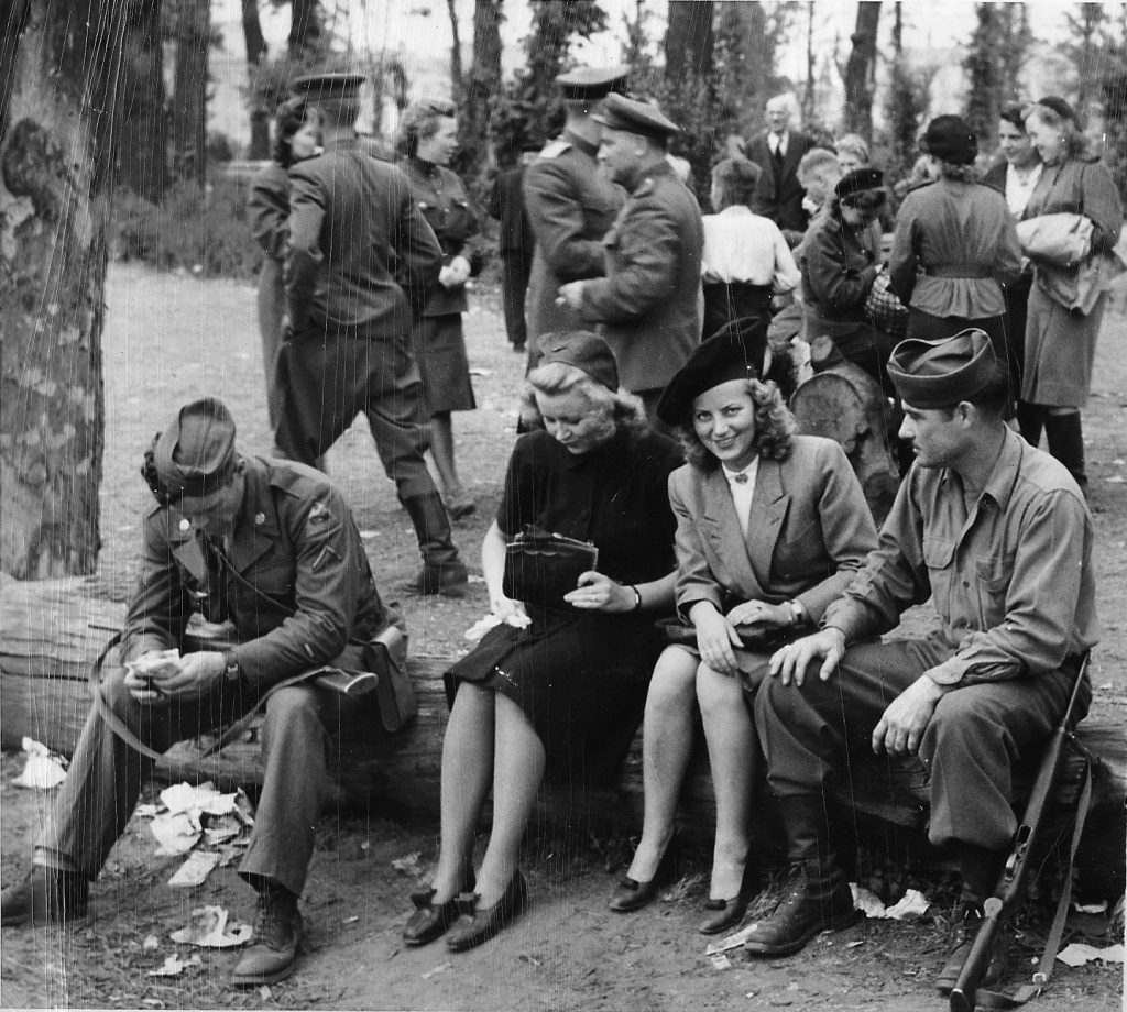 Внесли свою лепту и военные журналы типа "Звезды и полосы". Они печатали фотографии, на которых смеющиеся француженки целовали своих освободителей. Они также печатали фразы на французском языке, которые могут понадобиться при общении с француженками: "Я не женат", "У вас прекрасные глаза", "Вы очень красивая" и т. д.