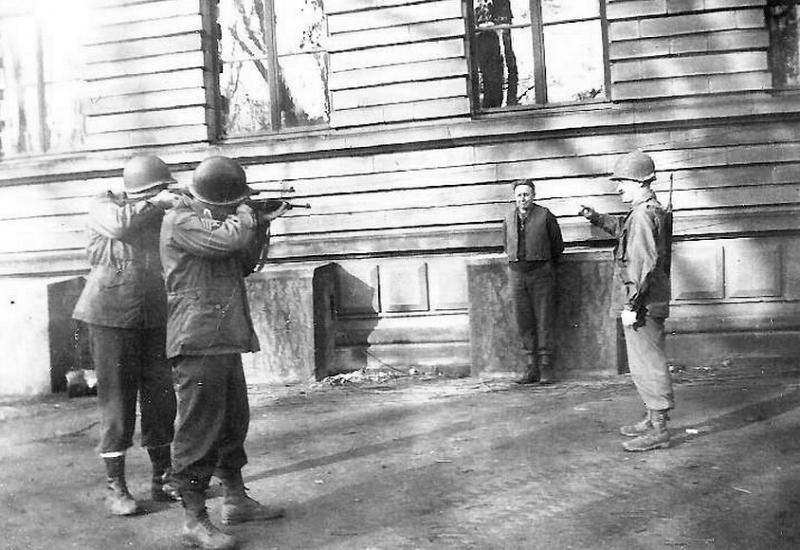 Так же, как союзники с востока, с которыми они встретились на Эльбе, американские солдаты были в ужасе от совершенных немцами преступлений и озлоблены их упрямством и желанием до конца защищать родину.