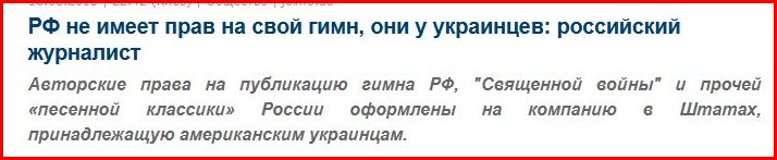 Но теперь речь идет уже не только о ворвстве тех или иных мелодий или слов песен, стихов или идей. Американские украинсцы из диаспоры США украли авторские права на сотни советских и российских произведений, включая гимн России и зарегистрировали их на себя.