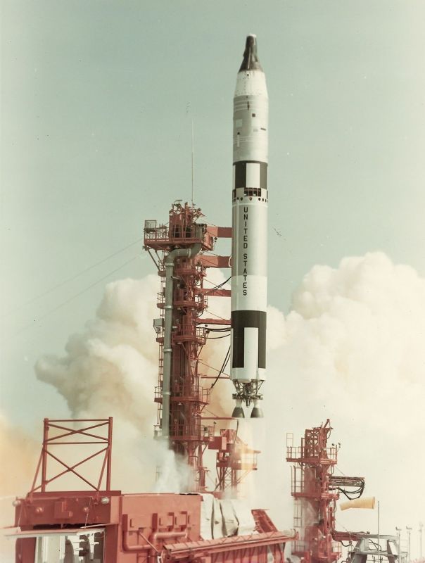 Ну, сейчас посмотрим что-нибудь. Скажем, Джемини-три — первый пилотируемый полет по программе Джемини, как дружно утверждают будущие сокамерники из НАСА. 1965 год, почти пять часов полета.