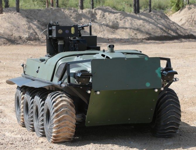 Ижевское предприятие «НИТИ “Прогресс”» создало дистанционно управляемый роботизированный комплекс «Платформа-М» на гусеничном шасси. Бронированная машина вооружена 4 гранатометами и пулеметом Калашникова, управляется дистанционно. Основное предназначение комплекса – нанесение ударов по стационарным и подвижным целям. Кроме того, «Платформа-М» может осуществлять разведку и патрулирование территории. Также она сможет обеспечить проход по минному полю. Работа над комплексом велась на протяжении нескольких лет. Сейчас началось ее серийное производство.