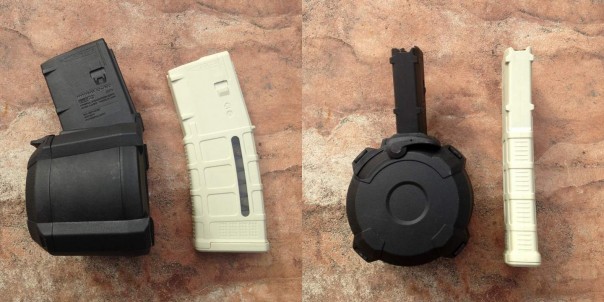 Спаренный барабан для немецкого МГ-34 весил пустым 2,3 кг при ёмкости в 75 патронов, а современный «дабл драм» от компании BetaC на 100 патронов калибра 5,56 мм весит пустым всего один килограмм… Но зато стоит под 300 долларов. Его южнокорейский клон стоит дешевле — всего 130 долларов, но даже он на фоне обычных «тридцаток» ценой чуть больше десятки за штуку выглядит дорогой игрушкой.