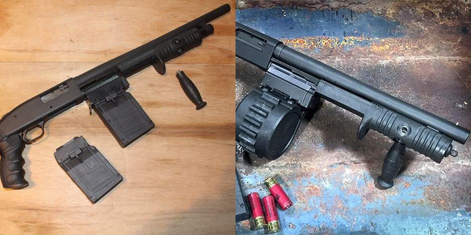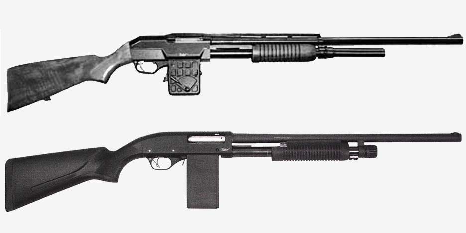 Разумеется, прежде всего речь идёт о Mossberg 590 M ® Mag-Fed: конструкторы компании сумели преодолеть значительную часть сложностей, связанных с надёжной подачей. Покупателям предлагаются двухрядные магазины ёмкостью пять, десять, 15 и 20 патронов; в сборе такое изделие выглядит поистине устрашающе.