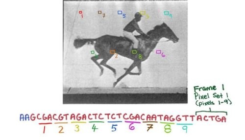 Анимированные изображения были внедрены учеными в генетический код бактерий E. Coli в виде последовательностей черно-белых пикселей, закодированных определенными последовательностями пар оснований ДНК, которые характерны для большинства вирусных геномов. ДНК, содержащая цифровую информацию, была помещена внутрь бактерий E. Coli при помощи электрического тока. Воздействие электрического тока открывает маленькие каналы в клеточной мембране, через которые молекулы ДНК могут проникнуть внутрь бактерии. Когда собственная защитная CRISPR-система бактерий обнаружила присутствие чужой ДНК, она тут же включила эту ДНК в генетический код бактерии.