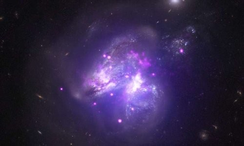 Что произойдет, если взять две галактики и "перемешивать" их в течение миллионов лет? Ответ на этот вопрос находится в новом снимке, полученном при помощи рентгеновской космической обсерватории Chandra, а фигурантом этого снимка является галактика Arp 299, располагающаяся на удалении 140 миллионов световых лет от Земли. Если быть точнее, что Arp 299 представляет собой две галактики, которые находятся в процессе слияния, в результате которого в будущем получится одна большая галактика.