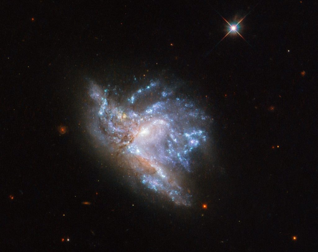 Представленный снимок телескопа Hubble демонстрирует некоторые подробности этого катаклизма. Сталкивающиеся галактики уже потеряли свою первоначальную форму. Под действием сил гравитации многие звезды NGC 6052 изменили свои орбиты. Впрочем, ввиду огромных расстояний столкновения между отдельными светилами крайне маловероятны.