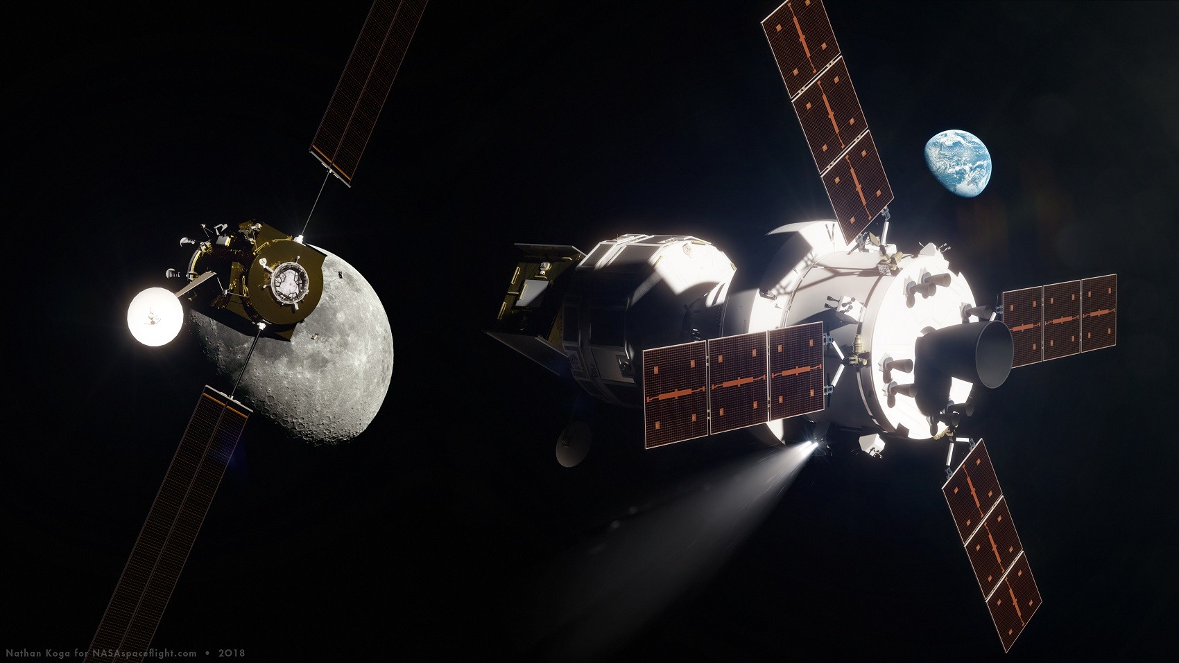 Окололунная орбитальная станция должна стать перевалочным пунктом для экспедиций за пределы низкой околоземной орбиты. Она будет находиться на высокоэллиптической лунной орбите с апоцентром около 70 тыс. км. Ее можно будет использовать как для миссий, предполагающих дальнейшую высадку на поверхность Луны, так для полетов в дальний космос.