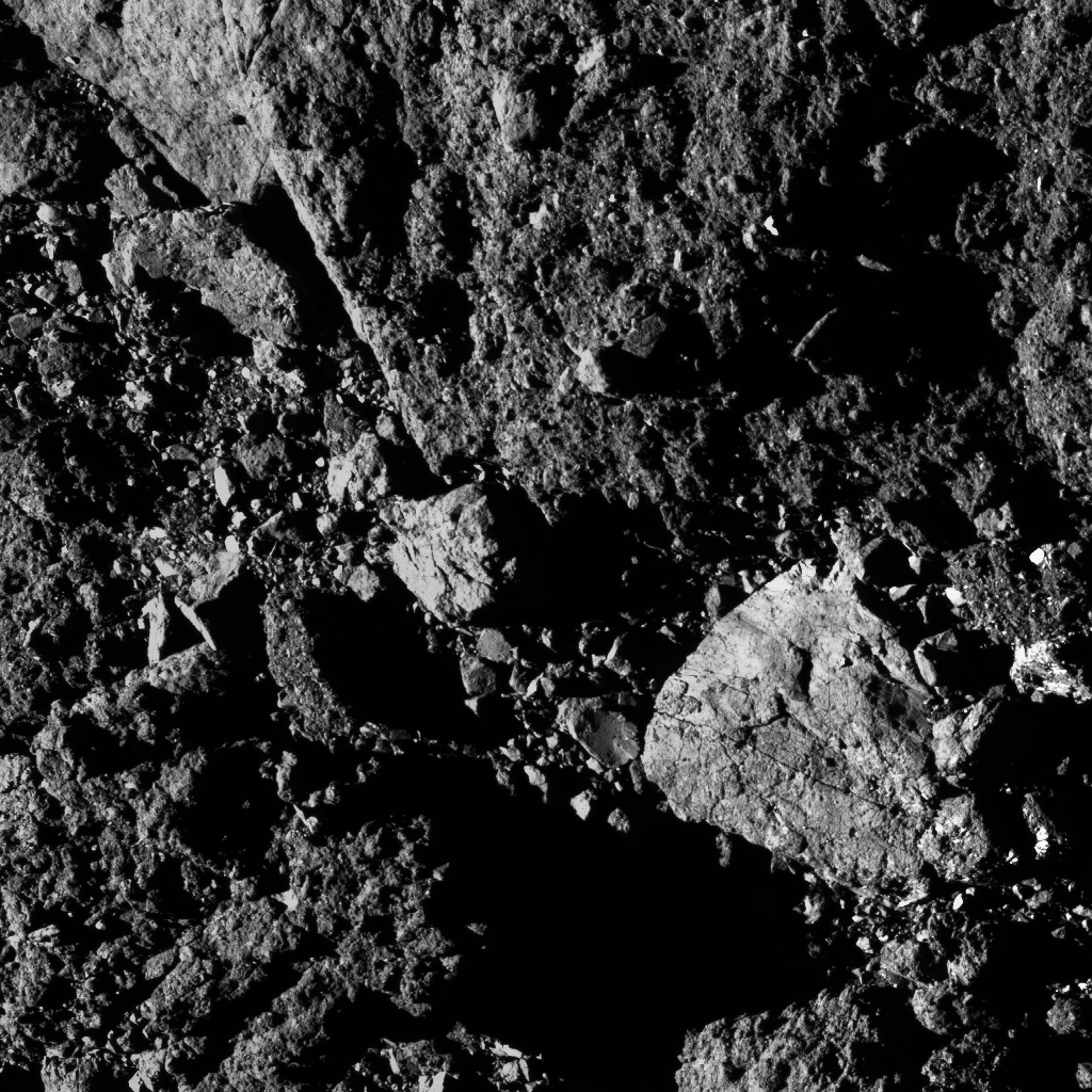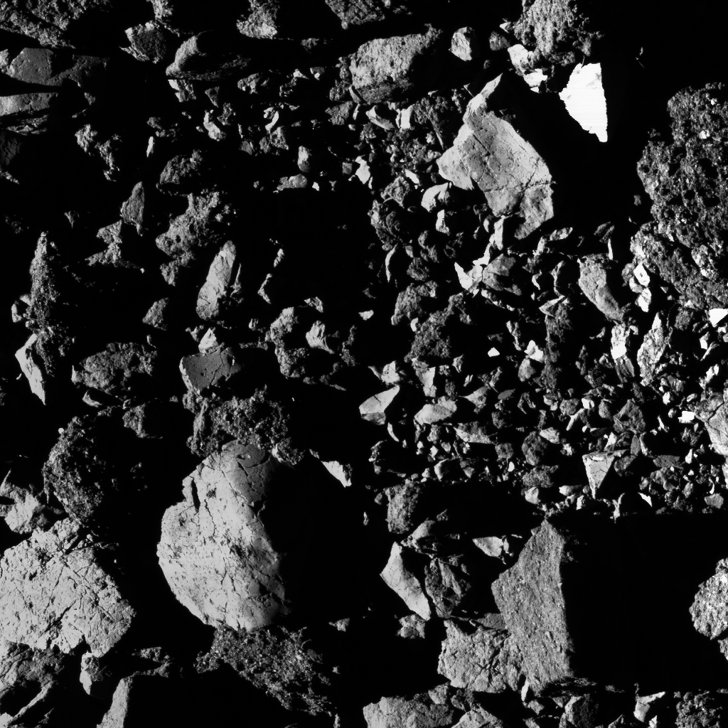 Скопление камней на поверхности астероида Бенну. Ширина запечатленной области составляет 9 м.