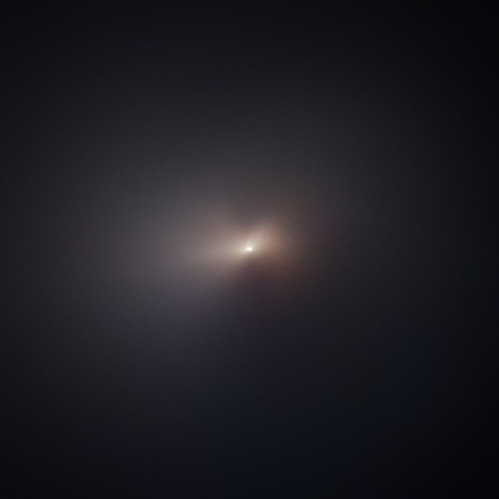 В облаке видны две конусообразные струи, образующиеся в результате сублимации льда в составе ядра кометы, постепенно превращающиеся в более широкие веерообразные структуры из-за вращения ядра.