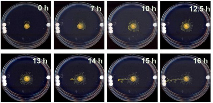 В новой работе ученые поместили слизевиков в центр чашек Петри, покрытых полуэластичным агаровым гелем. Поверх геля с противоположных сторон каждой чашки располагались один или три небольших стеклянных диска. Организмам было позволено свободно расти в темноте в течение 24 часов, а затем научная группа анализировала характер роста.