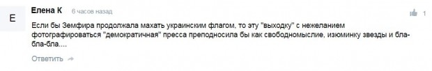 Вызывающее поведение Рамазановой послужило поводом для ожесточенных дискуссий в социальных сетях. Пользователи вспомнили инцидент, когда певица на концерте в Тбилиси развернула флаг Украины, который ей подал поклонник из Киева. Хоть Земфира и не ожидала такого развития событий, сенсацией это не стало - ведь она и раньше неоднократно поддерживала Украину, выступая против якобы агрессивной политики России.