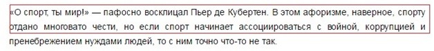 Но не для Собчак. Её статья сообщает нам о том, что Россия участвует в Олимпиаде только для того, чтобы постоять рядом с такими странами, как Германия, Великобритания, Япония и США.