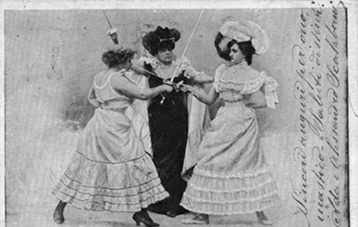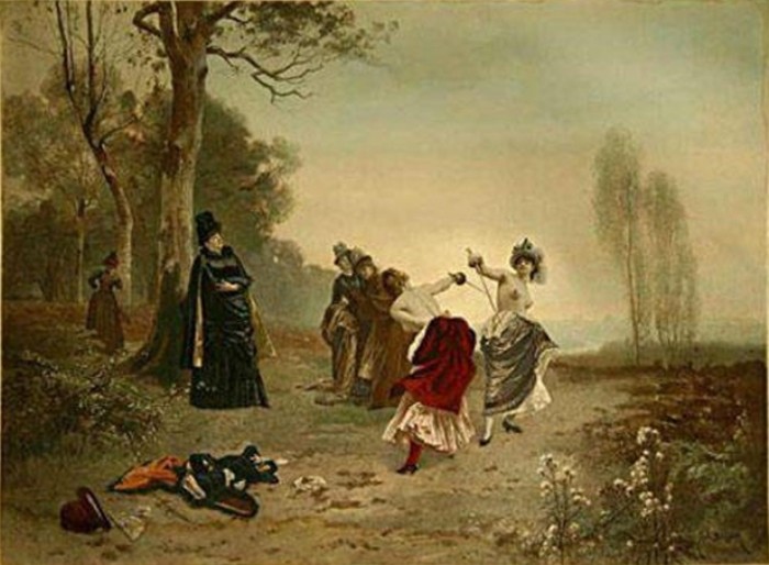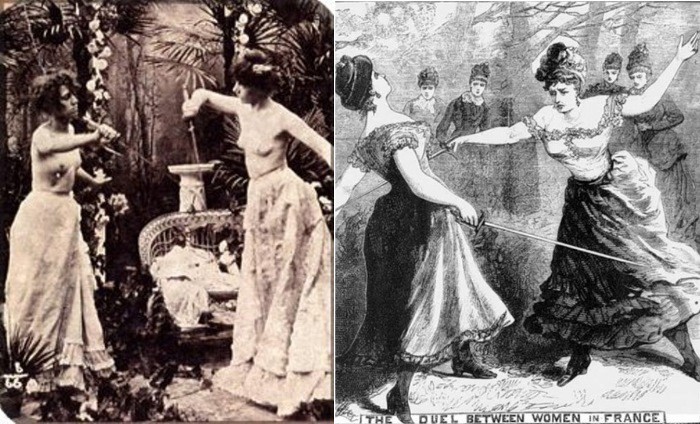 Самыми жестокими были женские дуэли на почве ревности. Из-за мужчин дамы дрались на пистолетах, шпагах, перочинных ножах и даже на ногтях! По сути, такие поединки часто становились боями без правил.