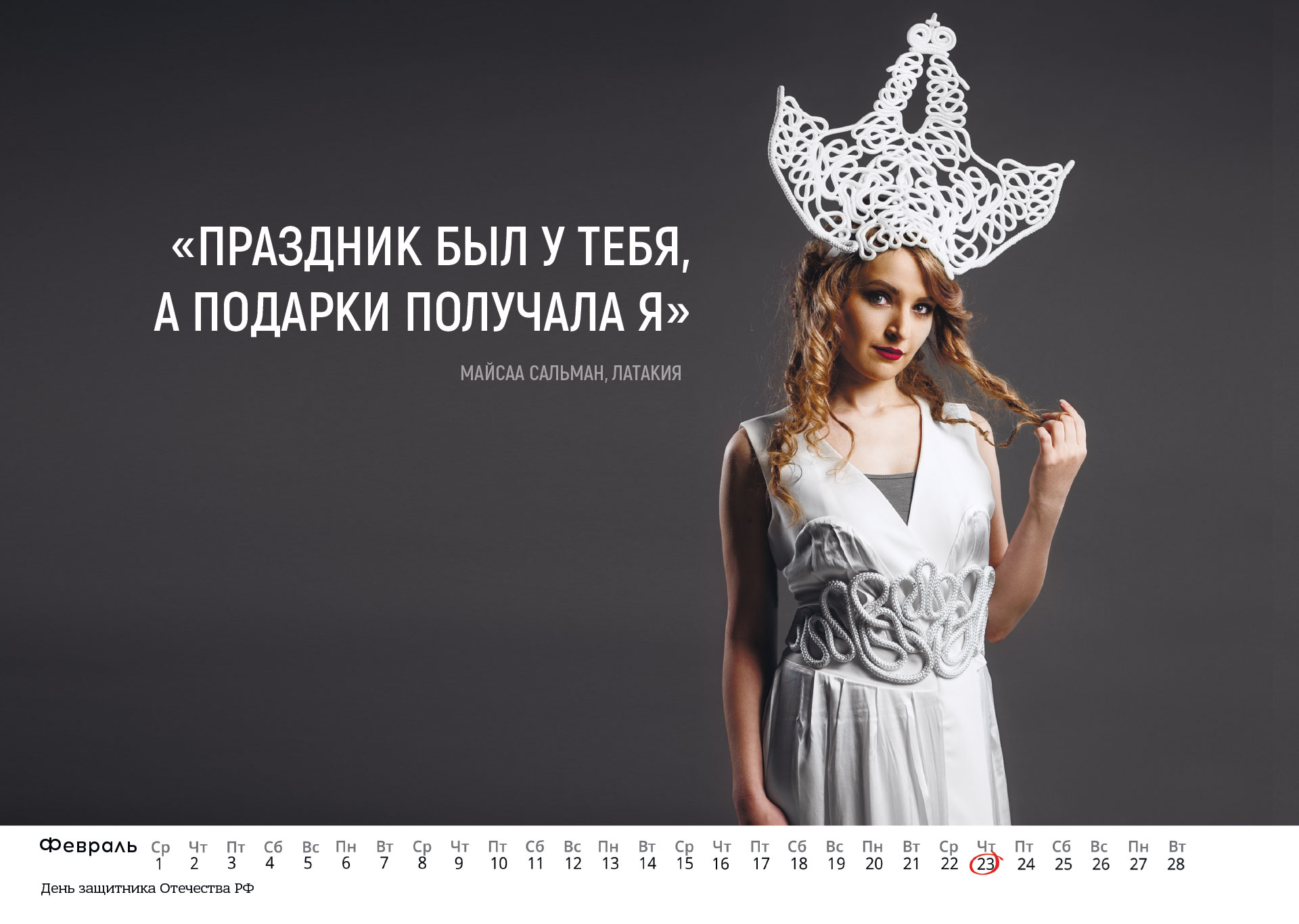 Молодёжный проект «Школа современного искусства» выпустил календарь-поздравление российским военным от 12 сирийских девушек.
