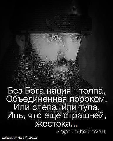 Говорят, нельзя навязывать убеждения. Это недемократично. Авторитарно. Даже если свои убеждения вы считаете правильными и спасительными. А вот человек не признает их. И оставьте его в покое (то есть позвольте погибать на основании демократических ценностей). Ладно. Но всё же согласитесь, если некто плохо пахнет и не знает об этом, то лучше отбросить толерантность и посоветовать ему помыться. От этого всем станет хорошо.Дорогие сомневающиеся! Здесь не было сказано ничего нового. В миссию Святой Руси верили миллионы достойнейших людей. Как сообщество спасающихся для вечной жизни её мыслили Александр Невский, Ломоносов, Сергий Радонежский, Пушкин, Иоанн Кронштадтский, Гоголь, Павлов, Лосев, Достоевский, тысячи и тысячи принявших муки и смерть за веру православную. И если вы считаете себя умнее, глубже, чище этих людей (только потому, что умеете писать в твиттере), если вы не можете пробиться сквозь своё вечное окаменевшее самодовольство и увидеть свет правды, то это не значит, что они не правы, а значит лишь то, что вы сами (совсем нетолерантно скажу) духовное бревно и самовлюблённый дурак.
