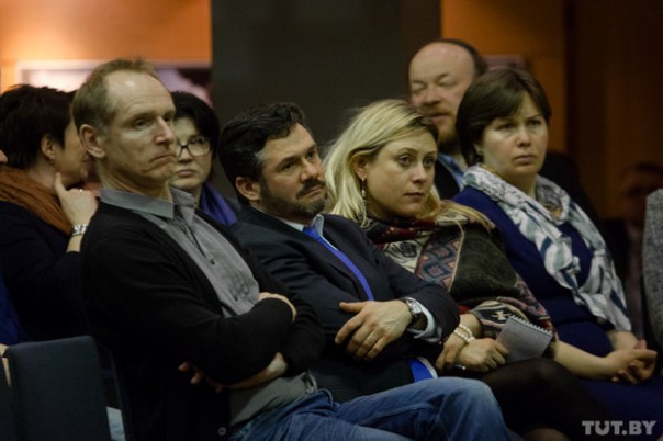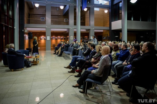 Посол Литвы в Беларуси Андрюс Пулокас остался и внимательно слушал выступление писательницы.