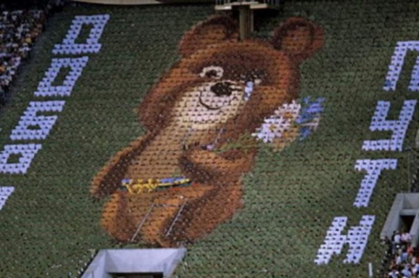 Олимпиада-80 стала культовым событием для жителей СССР, а одним из самых эффектных элементов стало выложенное цветными щитами изображение олимпийского мишки, у которого скатывалась слеза. Первоначально подобного в сценарии не было, а когда руководитель сказал поменять сторону ошибившемуся статисту, приказ стали выполнять все статисты ряда. Так впервые и получилась волна-слезинка.