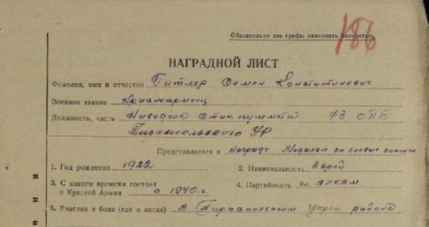 Любопытно, но в Великой Отечественной на стороне СССР также воевал Гитлер. Красноармеец-пулеметчик Семен Константинович Гитлер, еврей по национальности, при обороне высоты боец пулеметным огнем уничтожил более сотни солдат Вермахта.