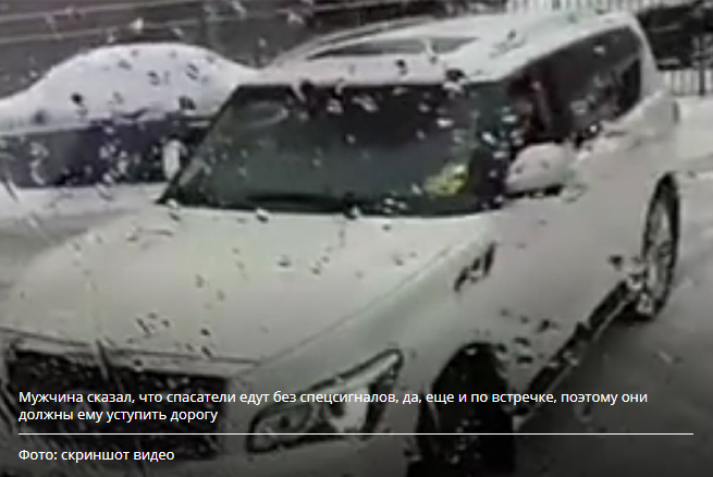 Разъехаться без скандала водителю внедорожника и двум пожарным машинам 30 января в одном из московских дворов не удалось. Дело было на улице Твардовского. Возле шлагбаума, где въезд к жилому комплексу, остановились две пожарные машины. Проехать они не могли из-за пытавшейся выехать белой Infiniti. Машина как раз выезжала. По правилам спасатели должны были проехать правее, но по габаритам машины не прошли. А левее стоял внедорожник, водитель которого уперся и не хотел сдавать назад. Мужчина сказал, что спасатели едут без спецсигналов, да, еще и по встречке, поэтому они должны ему уступить дорогу. Выяснения, кто кому должен уступить, затянулись.